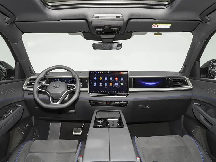 进入车内,内饰采用全新数字座舱设计,中控台线条平直规整,五屏联动的数字座舱是2026款途昂Pro的核心亮点,12.5英寸仪表、15英寸2K悬浮中控屏、11.6英寸副驾娱乐屏、HUD抬头显示与旋钮屏,共同构建了沉浸式智能交互体验。高通8155芯片的加持保证了系统流畅运行,空间方面,2+2+2 七座布局是核心优势,第一排空间宽敞;第二排为独立座椅,支持前后滑动与靠背调节,中央通道宽敞,方便进出第三排;第三排空间在同级燃油车中表现优秀,成年人短途乘坐不压抑,儿童长期乘坐舒适。后备箱常规容积 286L,放倒第三排扩展至 713L,二三排全部放倒最大容积超 2400L。