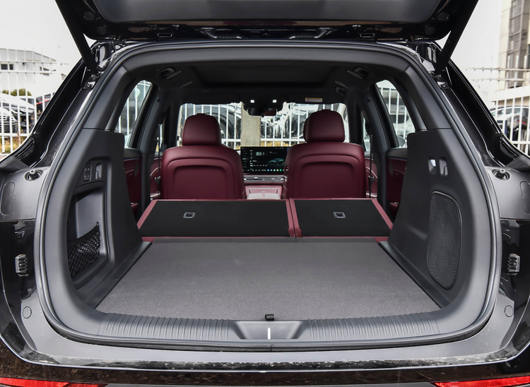 理想 L6 的空间利用率确实很高,后排空间巨大,但受限于车身结构,它的后备箱是“下沉式”的,虽然深但不如红旗规整。