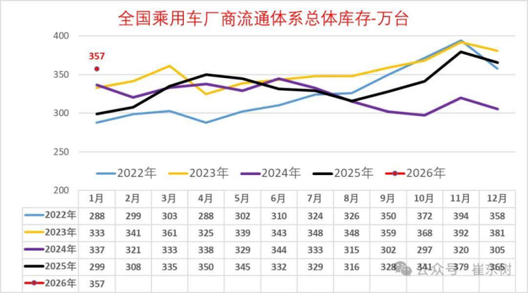 数据不会撒谎。乘联分会的最新统计显示,2026年1月末全国乘用车行业库存高达357万辆,比去年同期整整多出58万辆,足够卖上70天。这要是堆在地上,能绕北京五环路好几圈。1月全国汽车销量234.6万辆,环比下滑28.3%,同比也跌了3.2%。寒意刺骨。