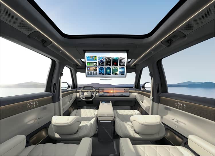 在智能交互与座舱氛围营造方面,ID. ERA 9X 也展现出了旗舰车型的配置水准。车型搭载了 15.6 英寸超高清中控主副驾双联屏,这一配置为驾乘人员提供了高效的人机交互体验,让车内操作更加便捷。针对后排乘员的体验,车型配备了 21.4 英寸后排可折叠吸顶大屏,同时搭配视角补偿膜,有效拓展了观看视野,为后排驾乘人员打造出沉浸式的影音体验。