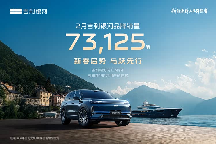 爆款领航逆势领跑!吉利银河2月销量73125辆,累计销量超196万辆
