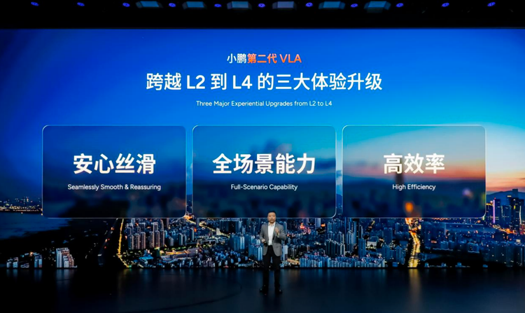 在何小鹏看来,目前行业普遍的L2级别辅助驾驶大多都是“小修小补”,而小鹏第二代VLA直接奔着L4而来,是一套“妈妈都爱开的国民智驾”。