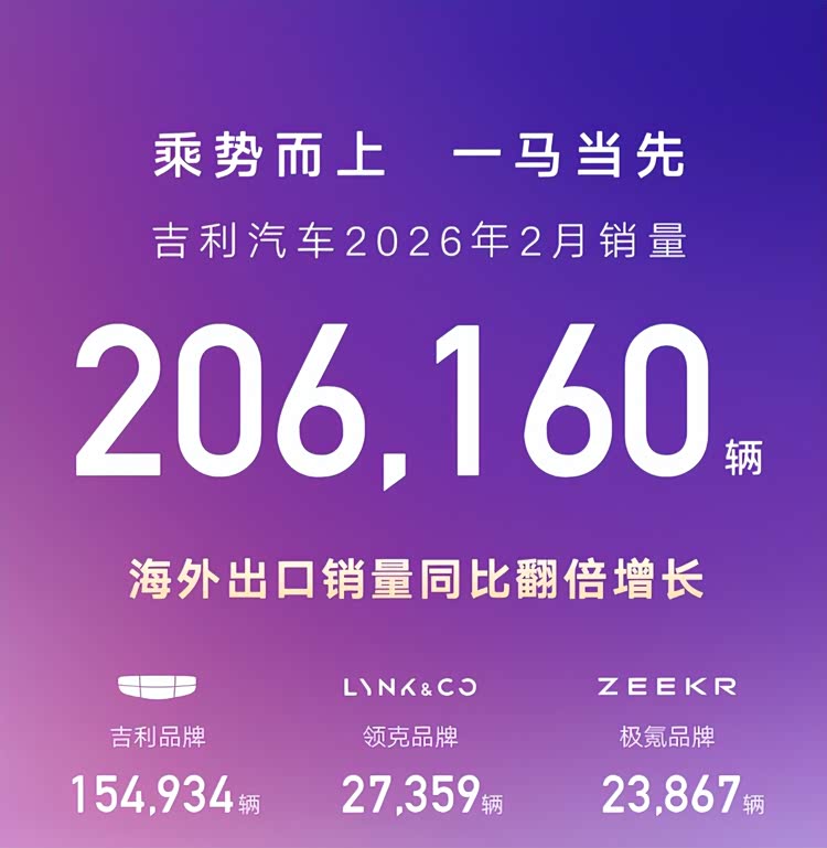 吉利2月销20.6万!吉利在新能源赛道展现强劲竞争力!