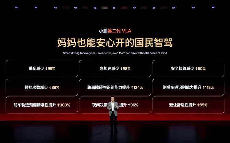 小鹏第二代VLA重构模型范式,开创性去掉“语言转译”环节,直奔L4终局。在此次体验日上,何小鹏提到:“只有妈妈都喜欢开,才能称为「国民智驾」。好的智驾应该像坐电梯一样,按下启动键,就能够从家里到达公司”。围绕这一目标,小鹏第二代VLA聚焦用户真实出行痛点,在“安心丝滑、全场景能力、高效率”三大体验维度全面升级——