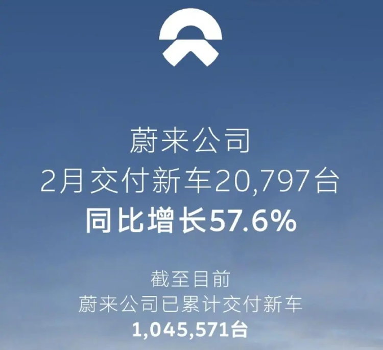 蔚来集团2月交付新车2.08万台,同比增长58%,这个增长速度还是很猛的,其中蔚来品牌交付量达到1.52万台。
