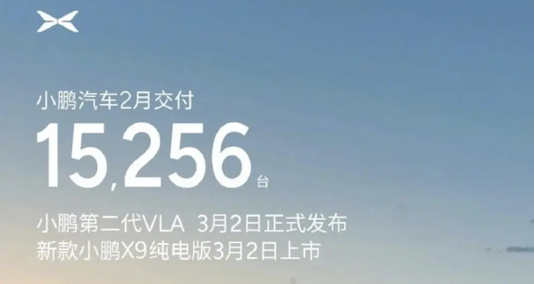 小鹏2026年2月交付量为1.53万辆,同比下滑50%,环比下滑24%,小鹏旗下多款主力车型正在进行更新迭代,销量转化为订单仍需时间。