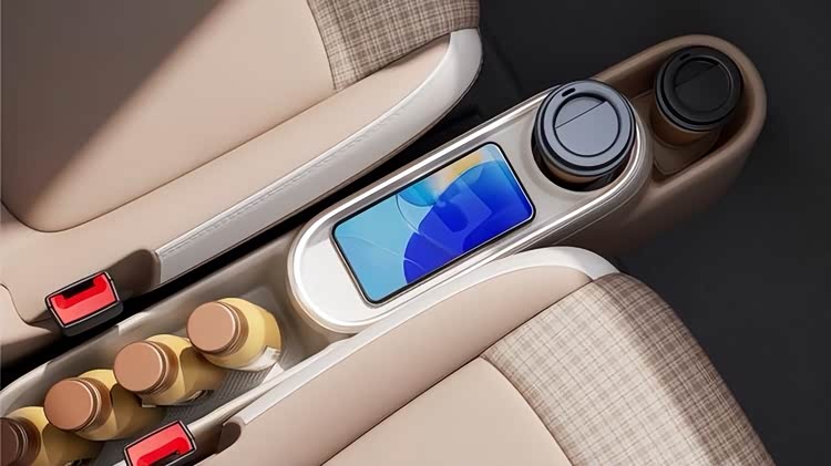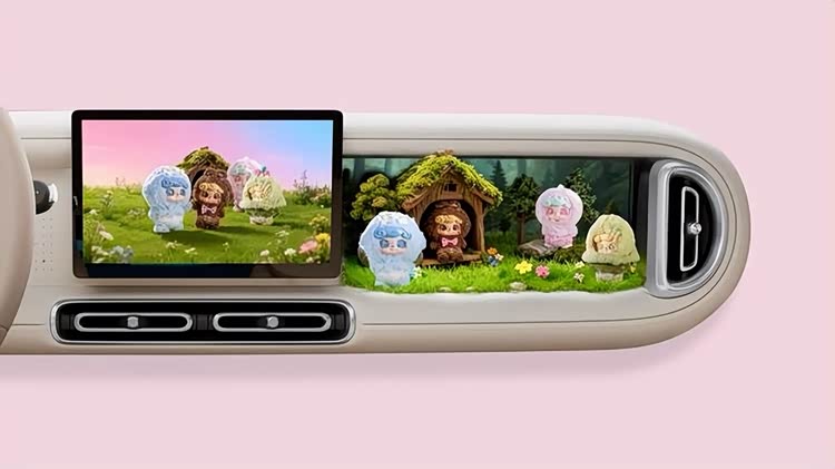 这次内饰最特别的地方,就是副驾驶前方的百变造景空间。这个区域不再是普通的储物格,而是兼具收纳与展示的多功能区域,车主可以根据自己的喜好摆放小摆件、潮玩或者装饰配件,自由更换主题,让车内更有个人特色。官方还和盲盒IP Q宝联动,提供专属的造景搭配,把潮玩元素和车内空间结合起来,满足年轻人追求个性的需求。这个设计没有牺牲储物的基本功能,平时放墨镜、纸巾、小钱包等随身小物件依然合适,只是多了展示和装饰的可能,让单调的副驾区域变得更有乐趣。