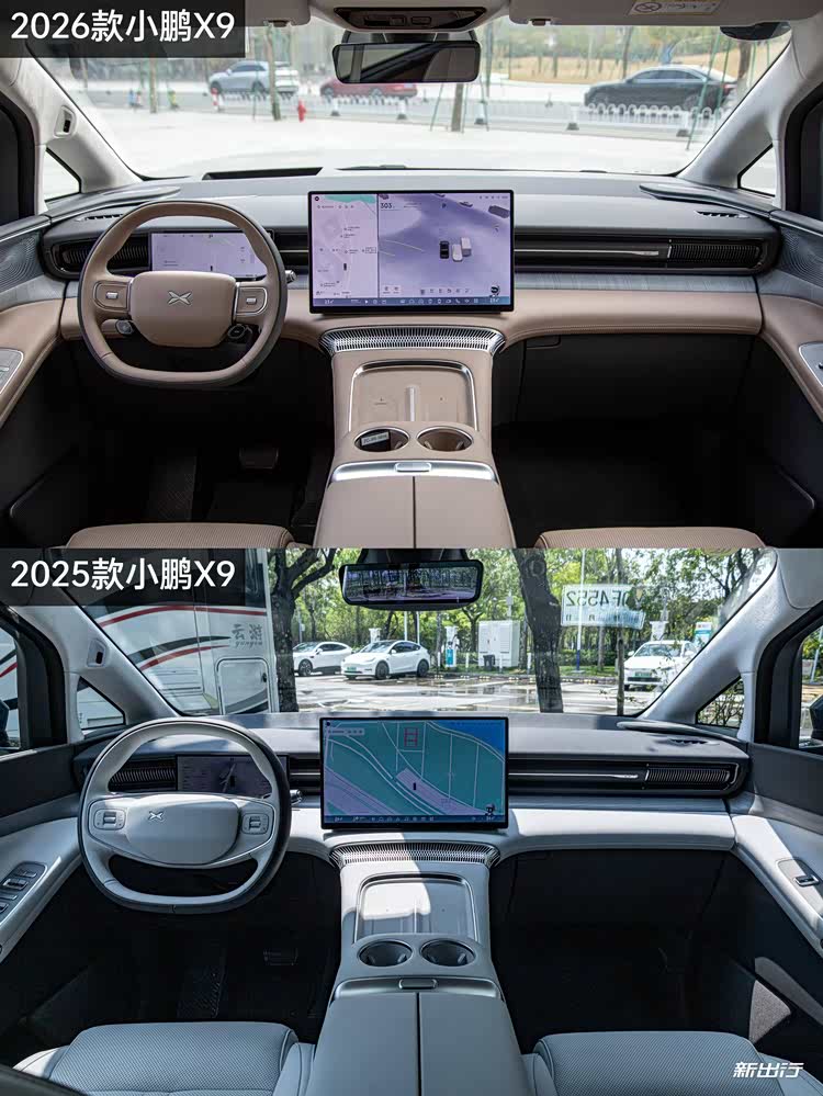 内饰方面,2026 款小鹏 X9 纯电版内饰升级星舰头等舱内饰,全面看齐超级增程版车型。