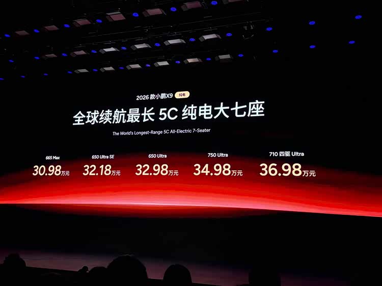售价 30.98-36.98 万元 2026 款小鹏 X9 纯电版正式上市