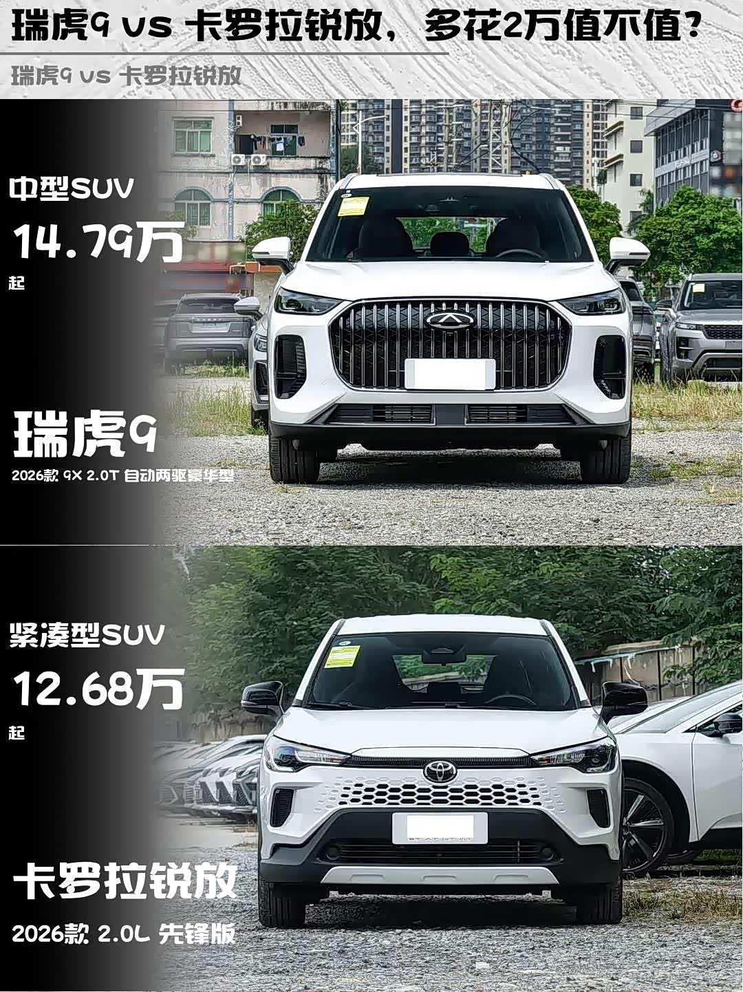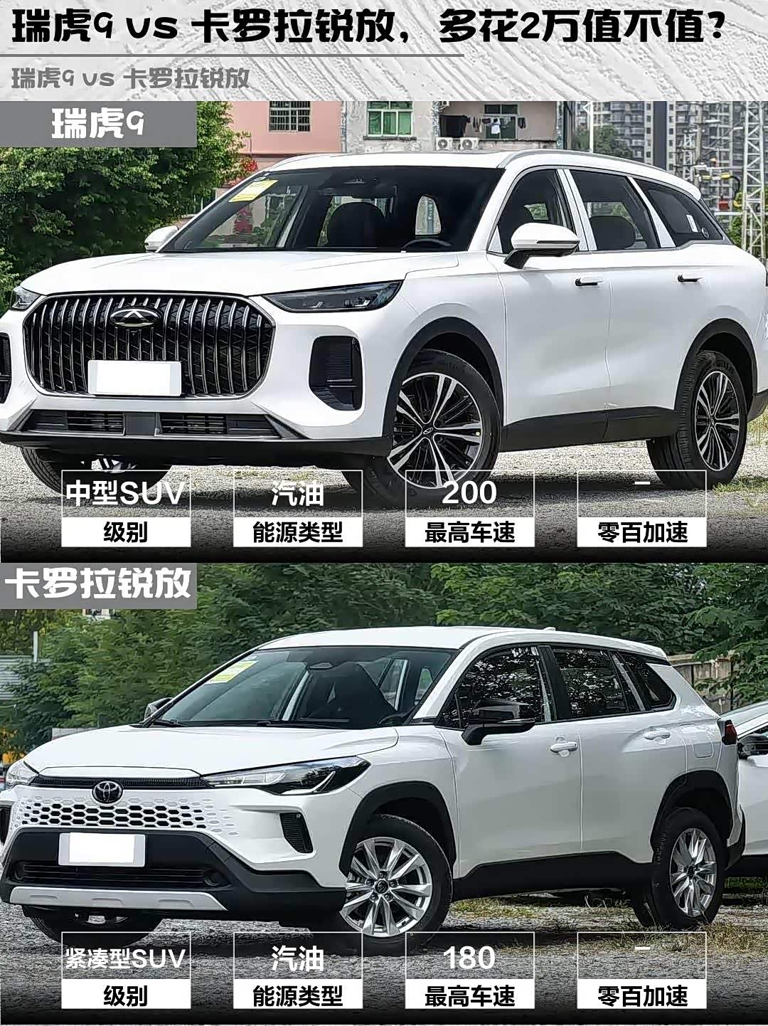 瑞虎9 vs 卡罗拉锐放,多花2万值不值?