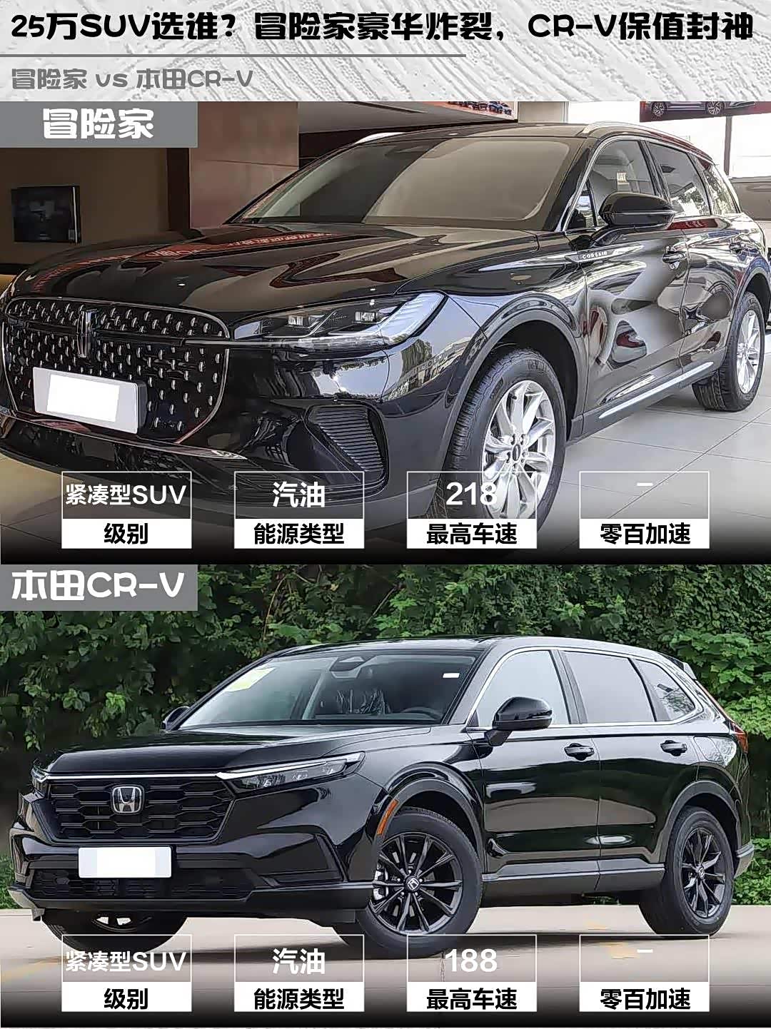 最近在纠结25万预算选SUV的朋友看过来!今天深度对比两款热门选手——林肯冒险家2025款2.0T两驱尊悦版和 本田CR-V(参数|询价) 2026款全球30年荣耀款240TURBO两驱锋尚5座版,实测干货直接上菜!🍳