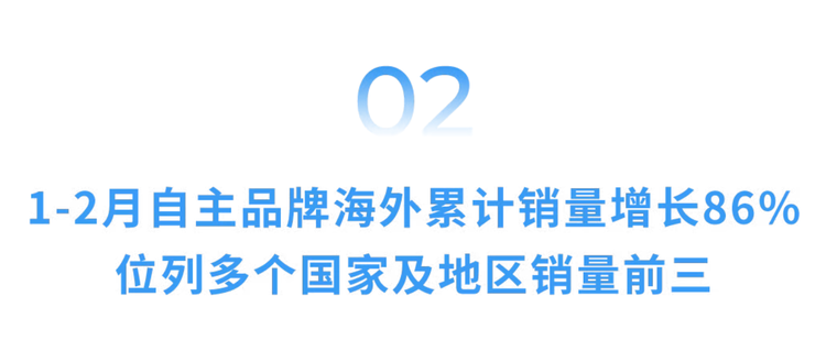 继今年1月在海外市场取得销售“开门红”后,广汽集团自主品牌2月继续在海外市场保持增长势头,销量同比大幅增长114%达11,125辆,1-2月累计销量为25,126辆,同比增幅达86%。