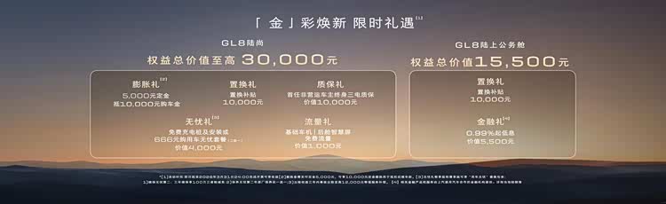 除此之外,别克还宣布即日起至3月31日,购买GL8陆尚可享至高30000元礼遇,而购买GL8陆上公务舱,则可享至高15500元礼遇等。