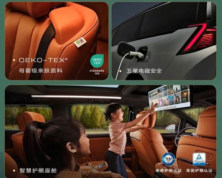 内饰方面,新车以豪华与舒适为核心,大面积采用Nappa真皮、15mm澳洲羊毛地毯与超细纤柔麂皮绒顶,触目皆显奢享质感。座舱搭载高通8775芯片,算力强劲,运行流畅,配备50英寸全景AR-HUD、环抱式三联贯通屏、21英寸4K后舱多媒体智慧屏及二排双5.5英寸智慧移动管家屏,支持8屏互动,操作便捷高效。二排配备多姿态零重力座椅,支持自适应调节与贵妃榻模式,前排及二排均标配加热、通风及按摩功能,大幅提升驾乘舒适性。
