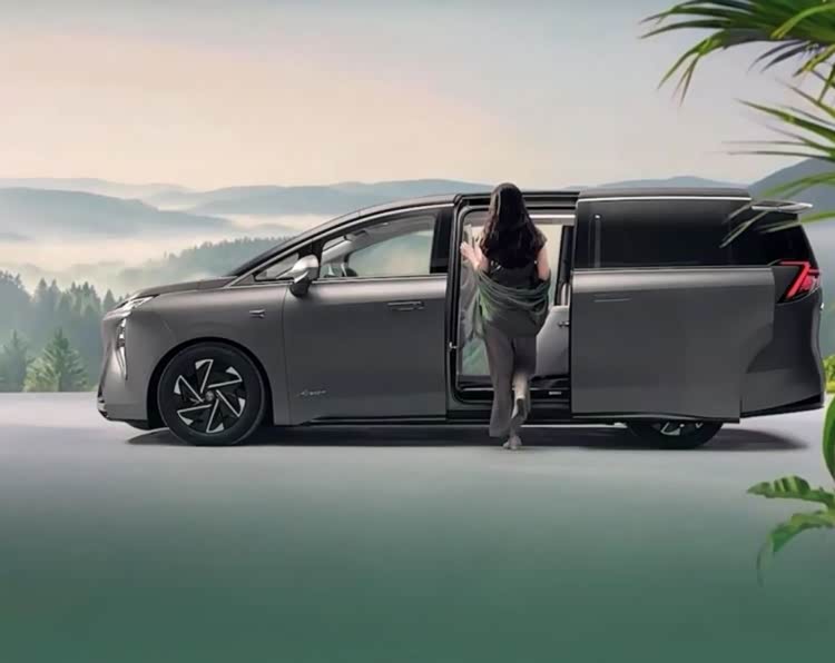 前脸采用分体式灯组设计,上方LED灯组由镀铬饰条贯穿相连,下方远近光灯组嵌入前包围两侧,辨识度拉满;前包围上半部分为封闭式设计,契合纯电车型定位,下半部分为梯形散热开口,采用渐变式衔接,凸显高级感。车身侧面线条流畅舒展,贯穿式腰线勾勒出修长气场,搭配隐藏式门把手与大尺寸多辐轮毂,兼顾科技感与豪华感。车身尺寸,长宽高分别为5260/2000(2023)/1835(1820)mm,轴距为3160mm,5门7座MPV布局,为车内提供别墅级超大空间,三排座椅配备330毫米电动滑轨,空间灵活性极佳。