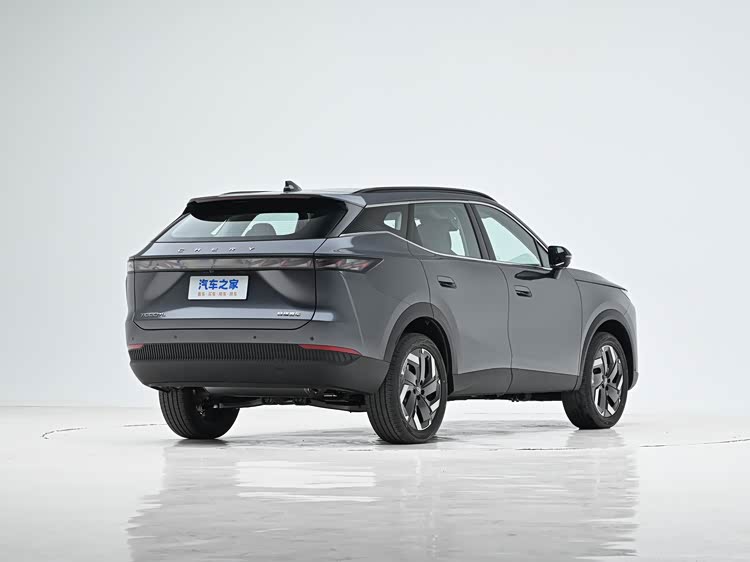侧面造型方面,车顶带着明显的弧度,配备有行李架,而且还营造出了悬浮式车顶,属于目前非常流行的设计语言;腰线采用了分段式设计,点缀出了车身侧面的层次感;轮眉和侧裙部分设计有粗壮的黑色饰板,进一步增强了力量感;轮毂采用了五幅式刀锋造型,有着一定的运动气息。