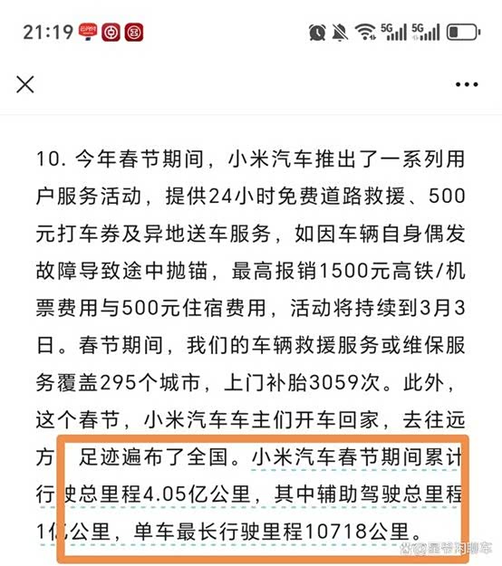 对此,笔者只能发出灵魂拷问:这位车主,您是开网约车的吗?还是说,您在春节这个阖家团圆的节日里,开着新提的小米汽车,参加了一场名为“逃离拜年”的耐力赛?