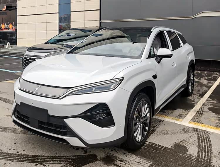 外观方面,比亚迪 宋Ultra(参数|询价) EV将延续家族式的设计理念;这让其颇有些“大号元PLUS”的味道。其前脸除了会有镶嵌“宋”字浮雕的银灰色饰板铺陈的密闭式中网以及“龙须”大灯以外,还会加入梯形贯穿前脸的LED灯带;且其三段式进气布局的立体化前包围两侧,还有着熏黑“利爪”样式设计,使其前脸显得大气且尖锐,同时还能流露出科技成分。此外,新车还配备了容积不小的前备箱。