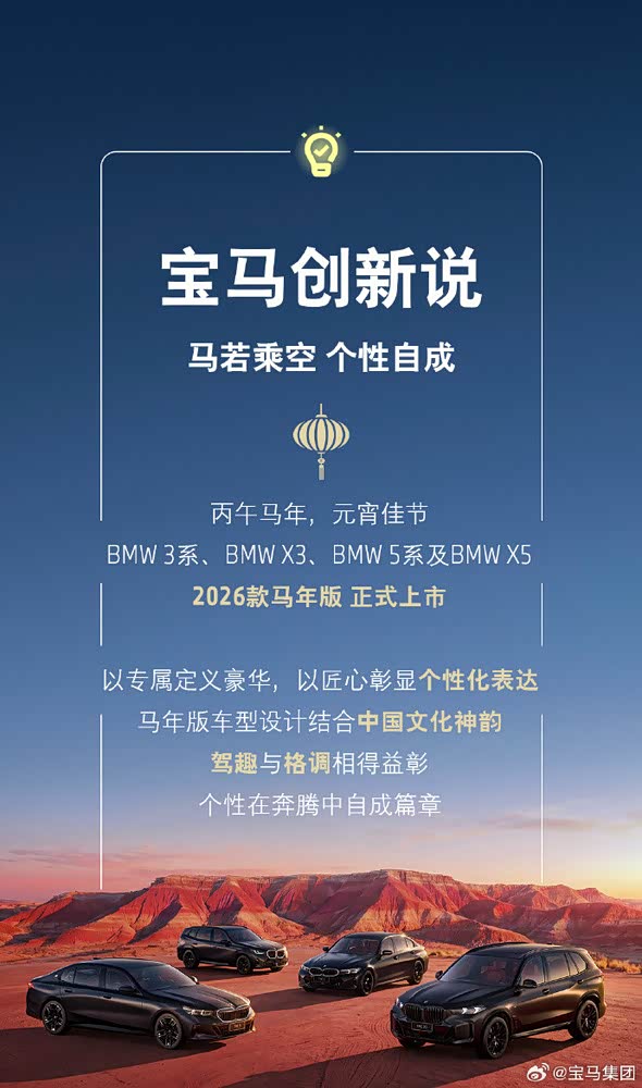 以上四款车型同步推出马年版,意味着宝马此次个性化定制战略覆盖了从入门豪华到旗舰、从轿车到SUV的全产品矩阵,旨在为不同细分市场的用户提供更具文化共鸣的选择。