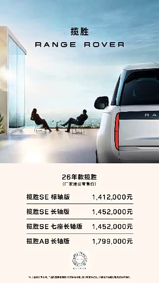 26年款 揽胜(参数|询价)正式启用新的车型命名体系。其中,SE系列作为核心入门车型,涵盖标轴五座、长轴五座及长轴七座三款车型,传承揽胜经典豪华基因,在价格不变的基础上提升配置,让入门亦享纯粹豪华质感;AB长轴版作为旗舰力作,融合了此前创世加长版与典范加长版核心配置,通过配置整合与价格优化,成为豪华SUV市场兼具卓越品质与增益价值的典范。更为明晰的豪华车型序列、更具价值的配置升级,确保中国用户充分体验揽胜的精湛工艺和奢华品质,彰显品牌对中国市场的高度重视。