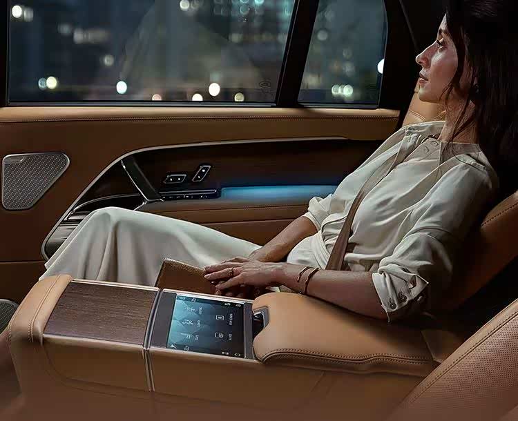 路虎揽胜AB长轴版配套双11.4英寸后排娱乐屏,英国之宝音响也未有缺席,并提供35个扬声器的选项。另外,路虎揽胜AB长轴版还具备高清全彩抬头显示、越野路况自适应定速巡航等功能配置,并且带有可调动态模式和全地形模式。