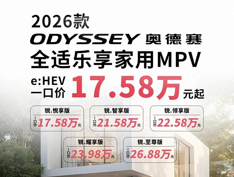 2026款本田奥德赛一口价公布 售价17.58万元起 直降6万元