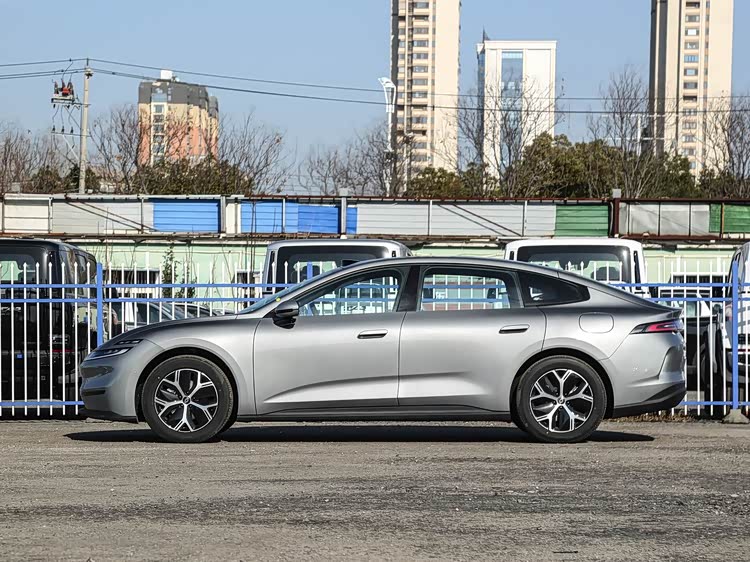 再来看车身侧面部分,新车为中大型轿车定位,车身尺寸为4885x1916x1496mm,轴距达到2922mm,为车内空间奠定了坚实基础,同时出色的得房率让空间利用率远超同级车型。车身线条流畅舒展,一条平缓的腰线从车头贯穿至车尾,搭配溜背式车顶设计,既营造出优雅的轿跑姿态,又没有牺牲后排头部空间,实现美感与实用的平衡。车身侧面配备隐藏式车门把手,闭合时与车身线条融为一体,有效降低风阻,开启时自动弹出,兼顾科技感与便利性。作为高阶版本,新车标配19英寸逐光运动轮毂,搭配245/45 R19宽胎,不仅提升了侧面视觉张力,更增强了行驶稳定性。