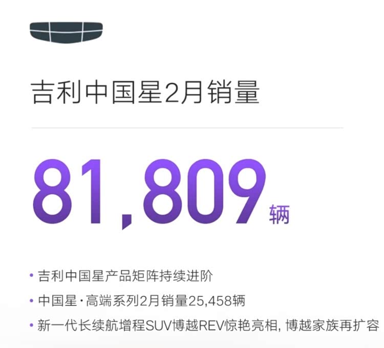 再细看一些,产品销量很均衡,前几年砍掉了低端车,中国星系列油车一个月八万辆是非常稳的,其中博越、星瑞、 星越L(参数|询价)等几个车很稳,今年会增加增程等新能源形式。银河的表现,大家都有目共睹就不细说了。