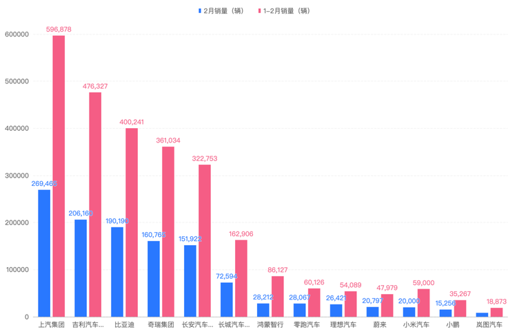 各车企的2月销量表现,先抛结论: