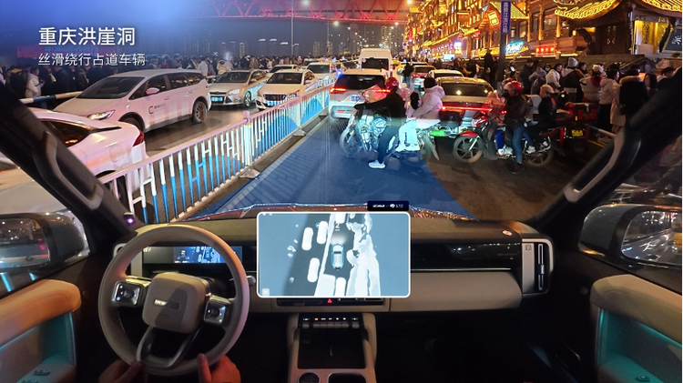 在重庆的网红旅游景区洪崖洞的真实路测也展现了HSD应对极限场景的能力。无论洪崖洞的夜间车流、山城狭窄巷道,抑或复杂的地下隧道路网,车辆均能像本地老司机一样动态判断、精准选道、从容穿行,加减速线性平顺。