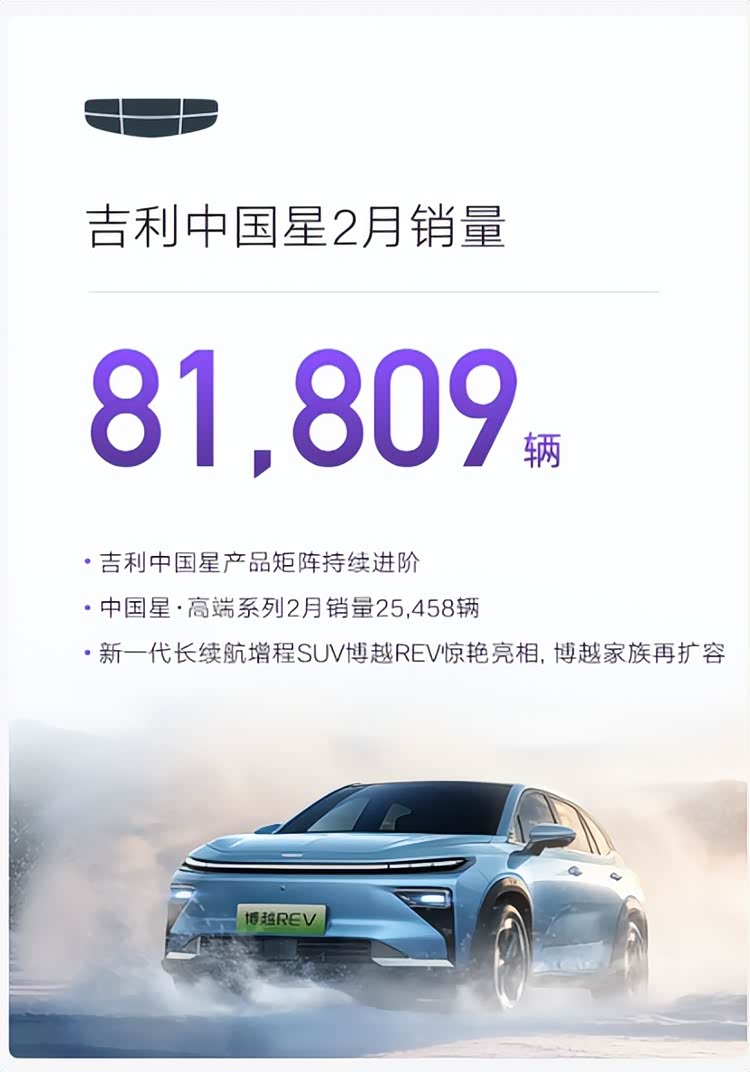 车家号·0浏览·2026-03-03 18:26 · 江西在竞争激烈的汽车市场中,吉利汽车始终保持着强劲的发展态势。近期,吉利汽车控股有限公司于3月1日公布了令人瞩目的2月销量数据,再次彰显其品牌的强大竞争力。