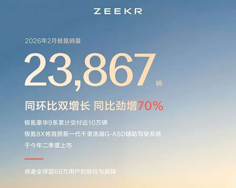 零跑和极氪的表现倒是让人意外,2月份,零跑交付28067辆,虽然环比降12.5%,但依旧稳稳站在头部梯队。极氪交付23867辆,和1月基本持平,甚至还同比激增了70%,照这个速度发展下去,其未来值得期待。