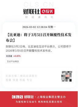 技术层面的布局同样释放积极信号。3月2日,比亚迪在互动平台宣布将于3月5日举行颠覆性技术发布会,相关消息发布后市场反应迅速,公司A股当日上涨8.36%。资本市场的反馈,显示出投资者对企业硬核技术实力的高度认可与信心。