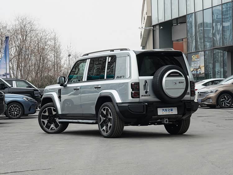 动力系统方面,iCAR V27采用增程式混合动力方案,由一台1.5T发动机和电动机组成。其中,1.5T发动机的最大功率是105kW。根据驱动形式不同,后驱版本搭载的电动机最大功率为185kW,而四驱版本采用前后双电机布局,综合最大功率达到335kW,官方给出的0-100km/h加速时间为5.5秒。车辆配备的电池容量为34.3kWh,依据配置不同,CLTC标准下的纯电续航里程有200km和210km两种,综合续航里程则分别对应1200km和1230km。底盘结构上,它使用了前麦弗逊式独立悬架与后H臂多连杆独立悬架的组合,部分车型还提供MRC磁霸悬架。四驱系统被命名为i-AWD鬣蜥四驱系统。这款车的设计也考虑到了非铺装路面行驶的需求,其最小离地间隙为220mm,最大涉水深度达到了600mm。