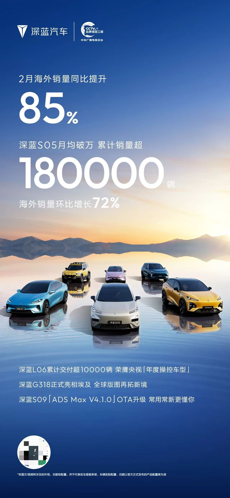 刚刚过去的2月份,深蓝汽车以一系列硬核动作交出亮眼答卷:海外销量同比增长85%,其中,深蓝S05累计销量超18万辆,销量月均破万,2月海外销量环比增长72%,位列2026年2月西班牙SUV-纯电细分市场注册量第一;深蓝L06累计交付超10000辆,Ultra+版本占比七成,荣膺央视“年度操控车型”,央视认证,实力加冕;深蓝G318正式亮相埃及,全球版图再拓新境;深蓝S09迎来「ADS Max V4.1.0」OTA升级,常用常新更懂你。值此马年开工之际,深蓝汽车还推出全系开工购车福利与服务升级举措,以真金白银的福利助力用户轻松购车。从海外市场的强势突破,到智能体验的持续进化,再到诚意十足的开年福利,深蓝汽车正以昂扬的姿态,开启新一年的发展篇章。