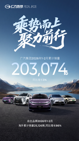 先是2026年1-2月的累计销量,广汽集团给出的数据是20.31万辆,同比增长3%,其中自主品牌海外累计销量2.51万辆,同比激增86%。在中国品牌走出去这件事上,广汽可以说是贡献了不少。