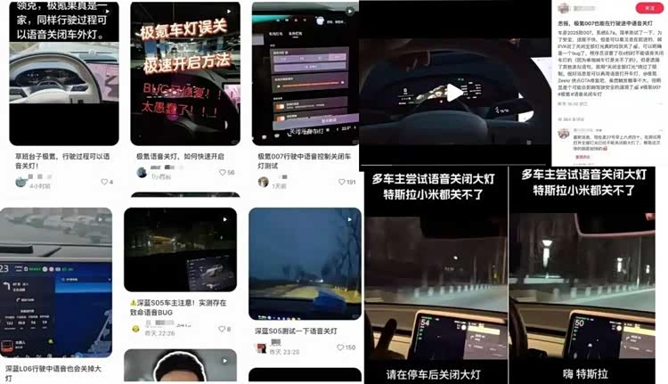 这一事件迅速引起网友对车辆智能语音系统的质疑,也掀起了一场广大车主“测试关灯”的热潮。