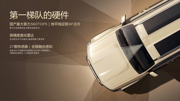 它用的芯片是地平线刚出的征程6P,算力560TOPS。啥概念?这是目前国产智驾芯片里最能打的了,相当于给车装了个高配电脑。顶配车型还给配了27颗传感器,包括激光雷达,360度无死角盯着路况。