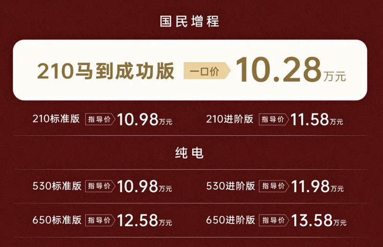 10.28万,大电池增程,210km纯电续航,还有官方兜底,放心!