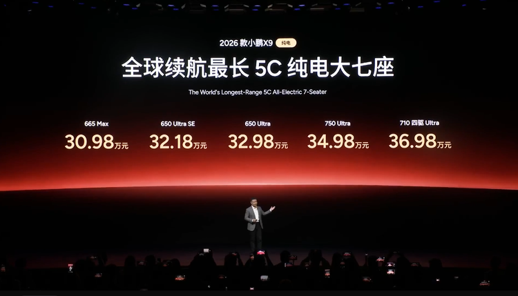 【新车上市】2026款 小鹏X9(参数|询价)纯电版近日正式上市,共推出5款车型,售价区间30.98万-36.98万元。更炸的是,这次还新增了一款超级增程版——2026款小鹏X9超级增程Ultra SE版,售价32.18万元。纯电版最高续航750km,并且搭载第二代VLA技术,这波操作属实有点秀。