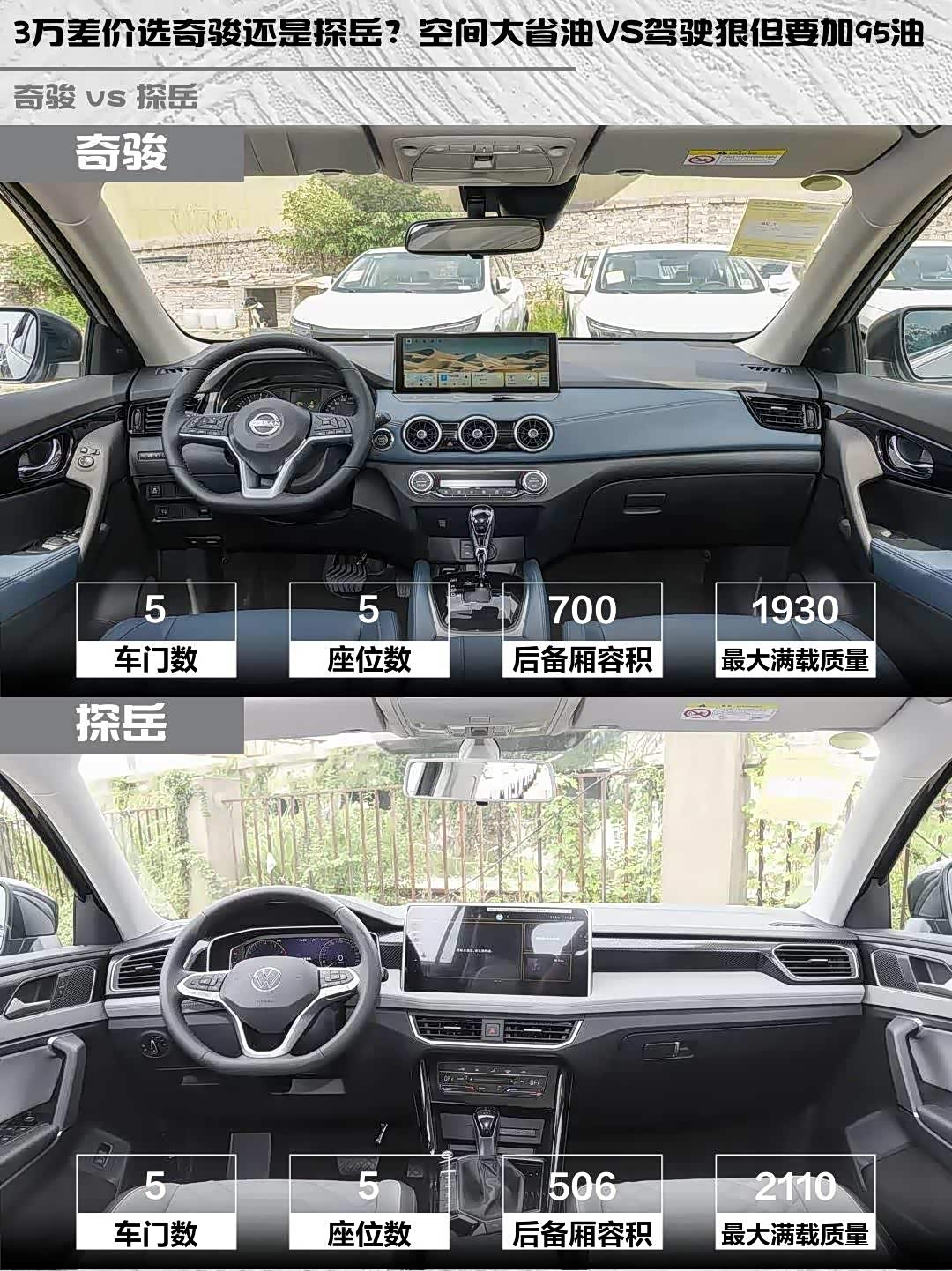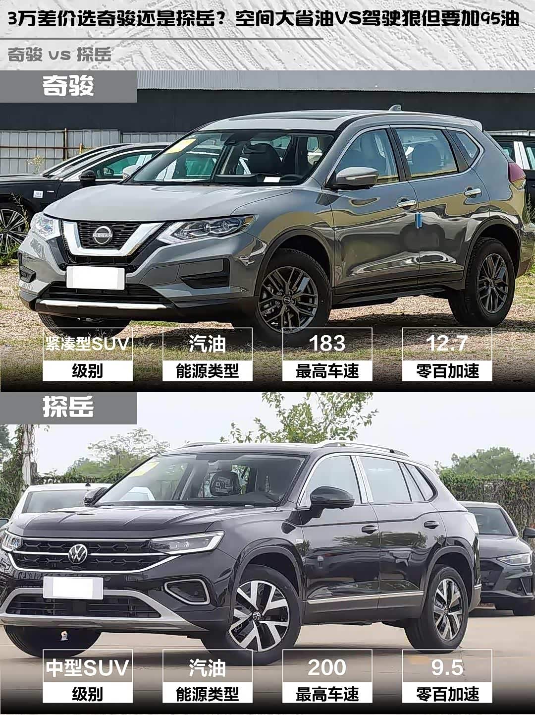 3万差价选奇骏还是探岳?空间大省油VS驾驶狠但要加95油