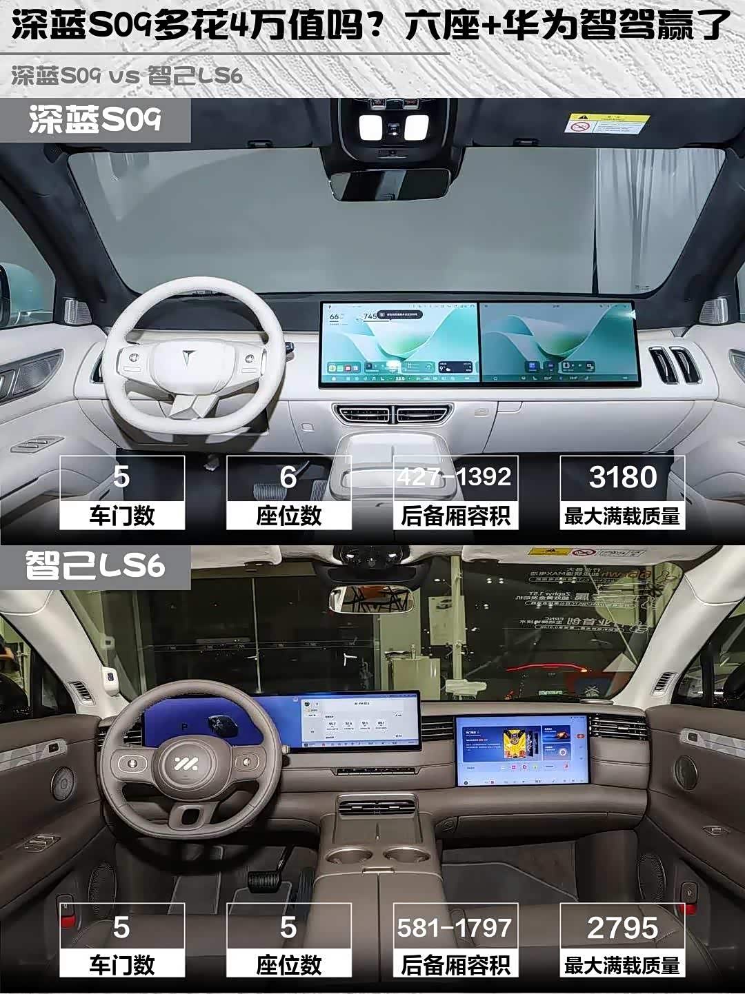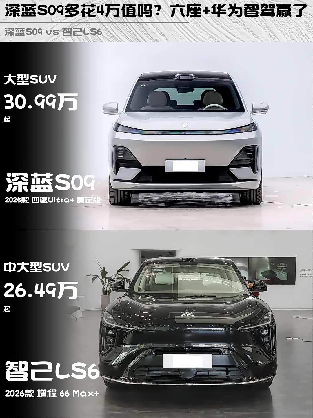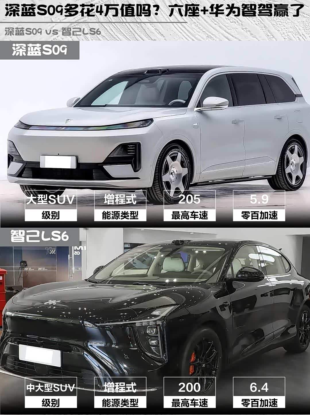 最近在选增程式SUV的朋友看过来! 深蓝S09(参数|询价)和智己LS6这两台网红车我都深度试驾了,分享一下真实对比感受,给纠结的兄弟们参考~🚗💨
