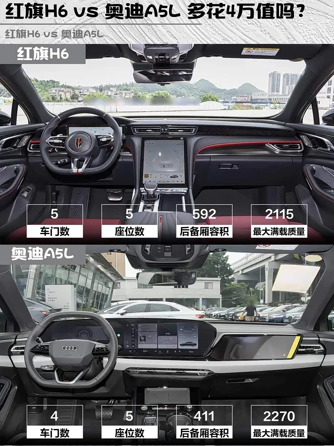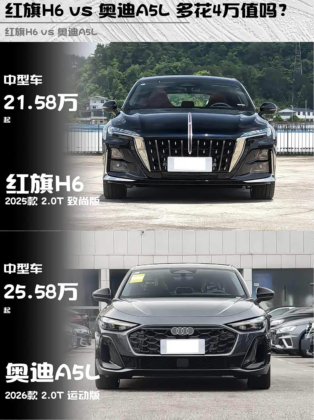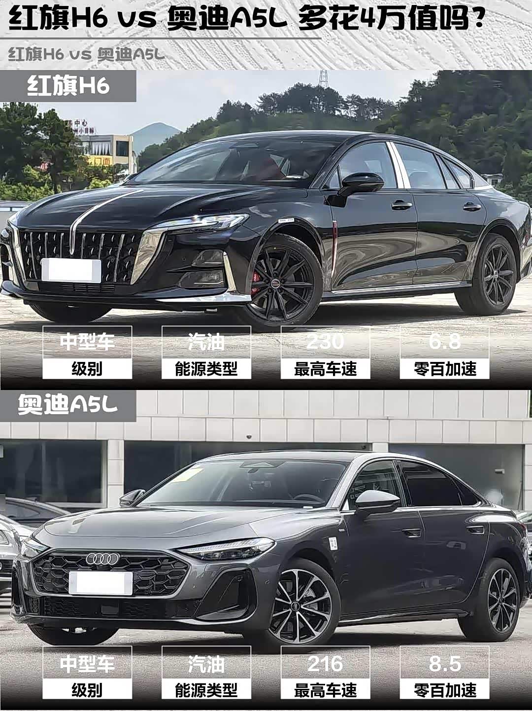 红旗H6 vs 奥迪A5L 多花4万值吗?