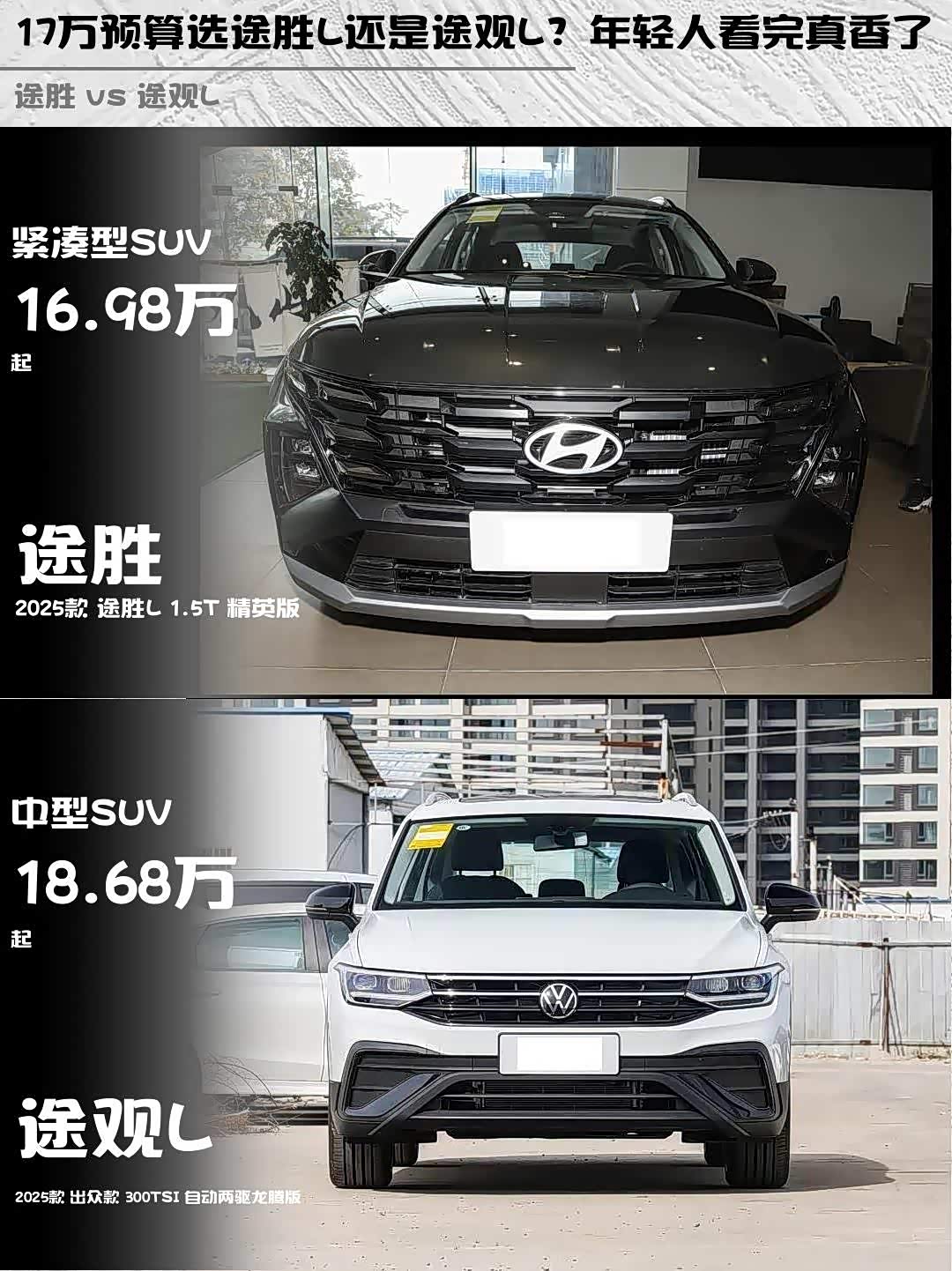 最近在选SUV的朋友看过来!🚗 今天深度对比两款热门车型——2025款途胜L 1.5T精英版和2025款 途观L(参数|询价)出众款300TSI自动两驱龙腾版,看完这篇你就知道哪款更适合你!