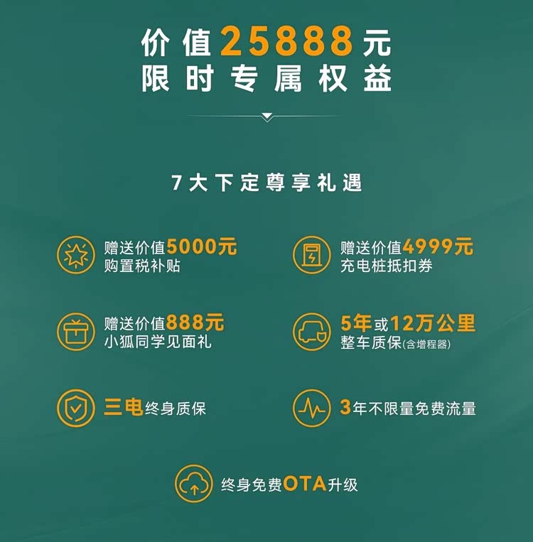 还在纠结选哪款车?2026年3月1日开启预售的极狐全新阿尔法S5,或许能给你答案。此次预售活动将持续至3月18日24时,有意向的消费者可在此期间抓紧抢订。此次预售推出了多款车型及对应的指导价与预售补贴价,极狐全新阿尔法S5的1450 睿享版指导价低至11.78万元,预售补贴价更是低至了11.28万元起。同时,还提供价值25888元的限时专属权益,包括赠送价值5000元的购置税补贴、赠送价值4999元的充电桩抵扣券、终身免费OTA升级、赠送价值888元的小狐同学见面礼、5年或12万公里的整车质保(含增程器)、三电终身质保以及3年不限量免费流量。