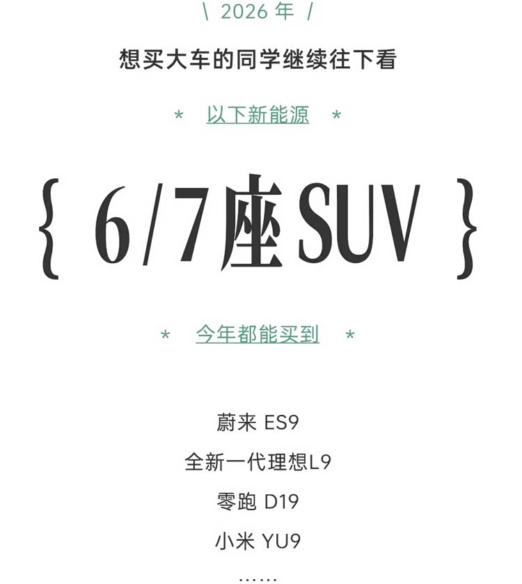 这 11 款全新6/7座 SUV ,2026年想买大车的人必看