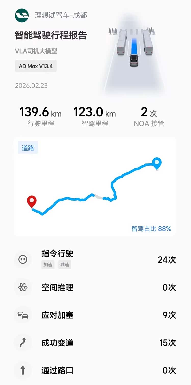 作为西部地区的中心城市,成都在马年春节推出了超长不限行的惠民措施,加上全国各地自驾游客的到来,车多缓行成为常态。在应对春节前后繁忙的出行,理想L9 Ultra的智能驾驶辅助系统也得以大展身手。在中心城区的小街小巷、繁忙的三环路,系统都能根据导航自主跟车、变道、超车行驶和自主上下匝道,较多车辆加塞也能轻松应对。期间,驾驶理想L9 Ultra在成都市区行驶时智驾占比90%,真正做到安全又轻松。每次出行的“最后一公里”,理想L9 Ultra也考虑周全。依靠强大的感知和计算能力,不仅支持车库的记忆泊车,还能在园区内实现“车位到车位”的自动驾驶,以及在巨大商业停车场进行车辆召唤。