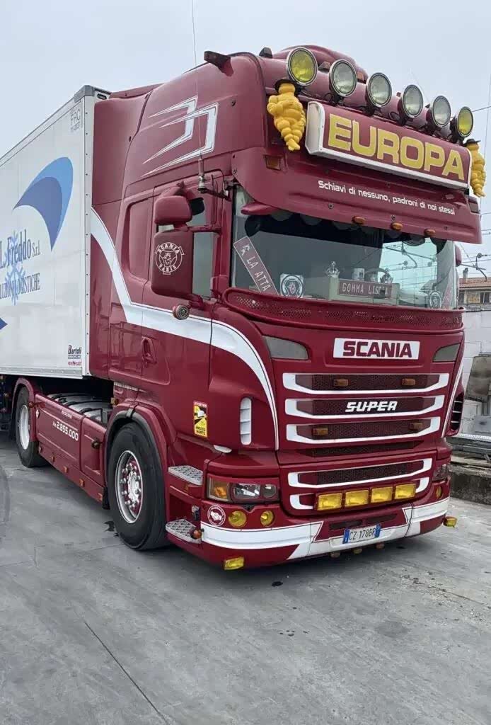 车家号·0浏览·2026-03-04 10:11 · 北京当下的法规对老旧卡车的长期使用可谓极其不友好。道路通行费、环保区限制、客户公司的规章制度,以及日益繁杂的设备要求,都成了摆在面前的障碍。正因如此,一辆意大利的斯堪尼亚R系列卡车上的那组贴纸,才格外引人注目。