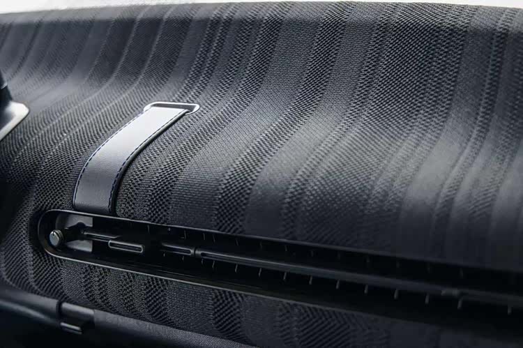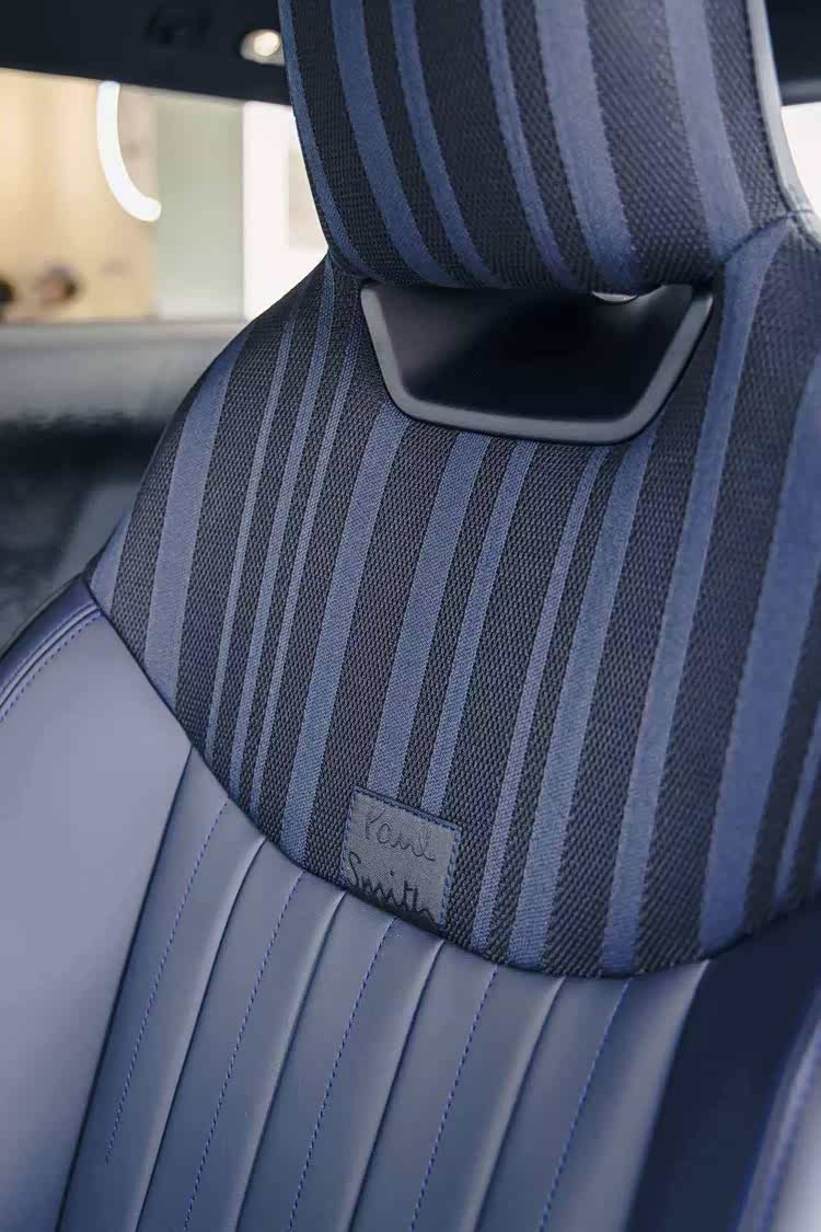 经典彩色条纹——Paul Smith的标志性元素,在这款车上呈现出三种截然不同的性格:驾驶员侧车顶上的是亮眼但克制的彩色条纹,方向盘上有低头可见的10色编织彩条绑带,仪表台上则采用了环保材料立体编织的暗调条纹织物。设计师对材质、纹理、图案和色彩施展魔法,让同一元素在不同材质、不同光线、不同视角下,演绎出丰富层次。