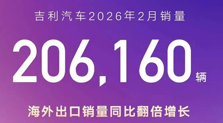 根据公开的销量显示,在刚刚过去的2月份,吉利汽车单月销量达到了206160台,其中,新能源汽车月销11.7万台,海外出口销量同比实现了翻倍增长。今年1-2月累计销量为476327台,整体上来看,吉利汽车拥有这么好的收获,足以说明吉利汽车有着很强的后劲。